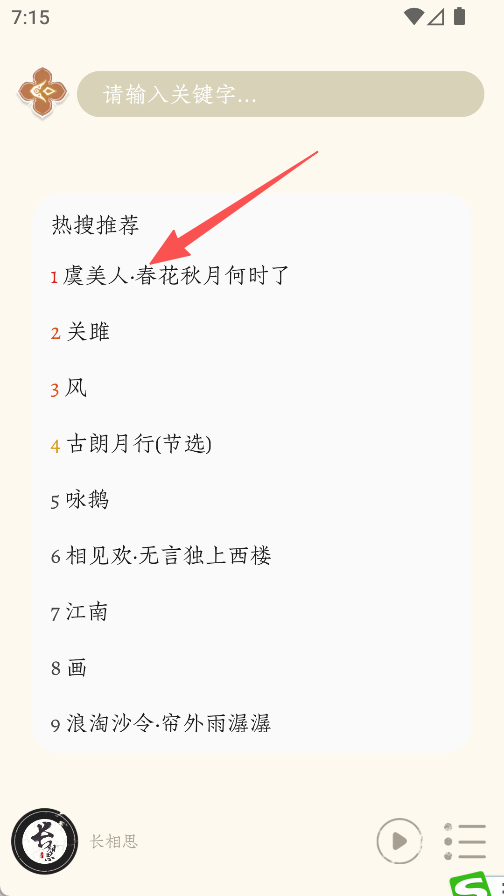《长相思》能搜索诗词,“虞美人・春花秋月何时了”等是热搜推荐。有“毛泽东诗词集”“小学一册”等多样诗单,诗单里的诗词可播放收听,像“采桑子・重阳”“蝶恋花・从汀州向长沙”都能听。还能收藏诗单,方便后续查看。此外,也能找到“青玉案・元夕”这类诗词,满足不同诗词爱好者的需求,助力大家感受诗词的韵律与魅力。