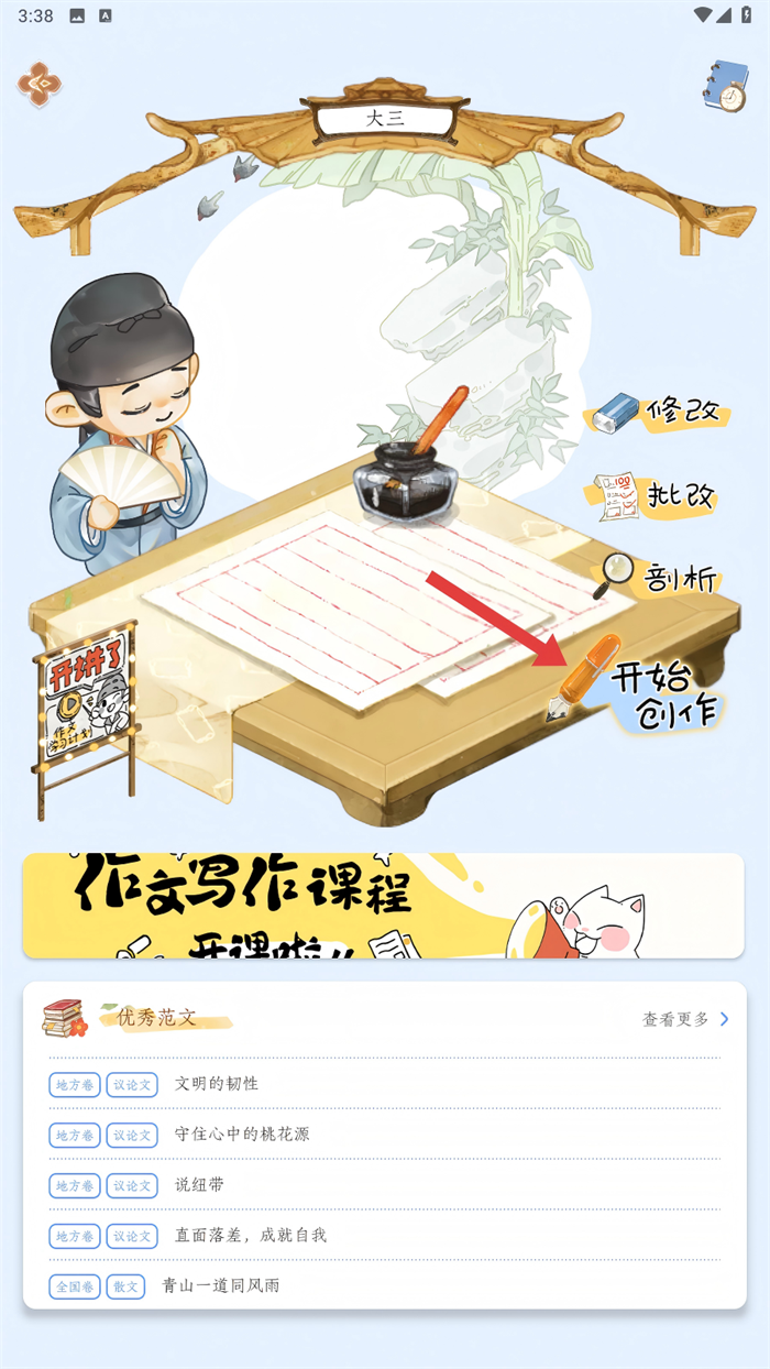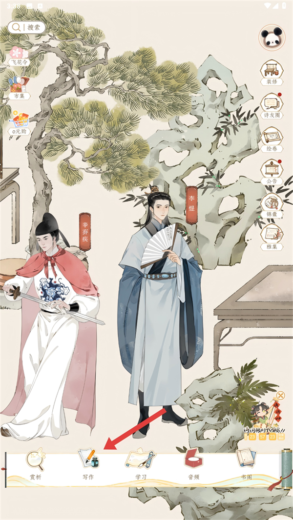1、进入长相思APP主页,点击底部【写作】按钮,即可进入作文写作界面,开启国风韵味的写作之旅哦。