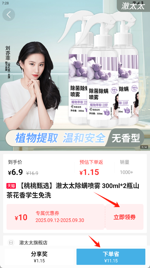 3、清晰展示商品信息立即下单,实现高效省钱的购物体验。