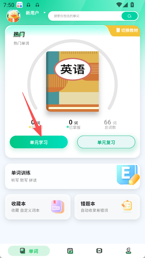 1、进入单元学习板块,可系统学习单词,为后续练习打好基础。