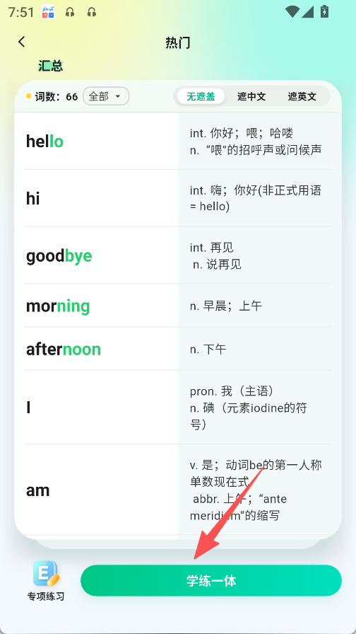 2、在软件内找到学练一体模块,开展针对性单词练习。