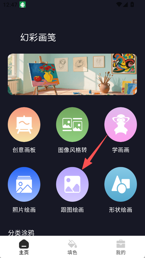 2、进入跟图绘画功能,参照提供的图片内容,跟随进行绘画创作。