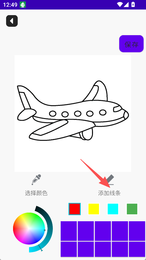 2、提供丰富绘画元素,有鲸鱼、飞机等多样图案,且能自由选择颜色,添加线条,助力丰富创作内容。
