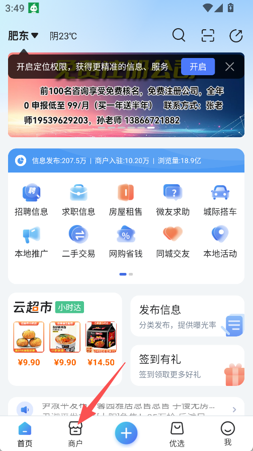 3、提供本地信息获取功能,通过各服务板块与商户查询,获取贴合本地场景的招聘、租售、商户等信息。