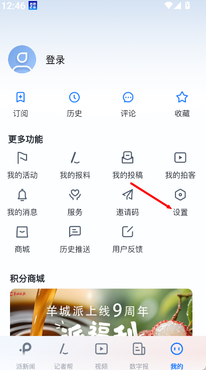 1、进入羊城晚报app首页,点击右下角的“我的”按钮,进入个人中心页面,查看与账号相关的功能入口。