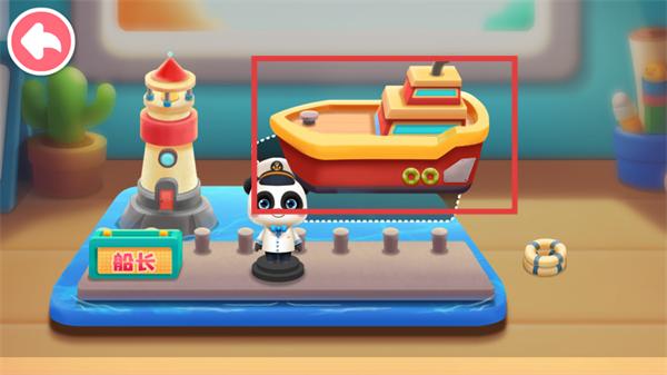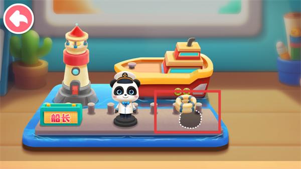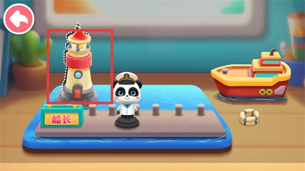 2、关卡中先互动【灯塔】道具,结合熊猫角色旁的【船长】标识,了解船长职业相关元素。