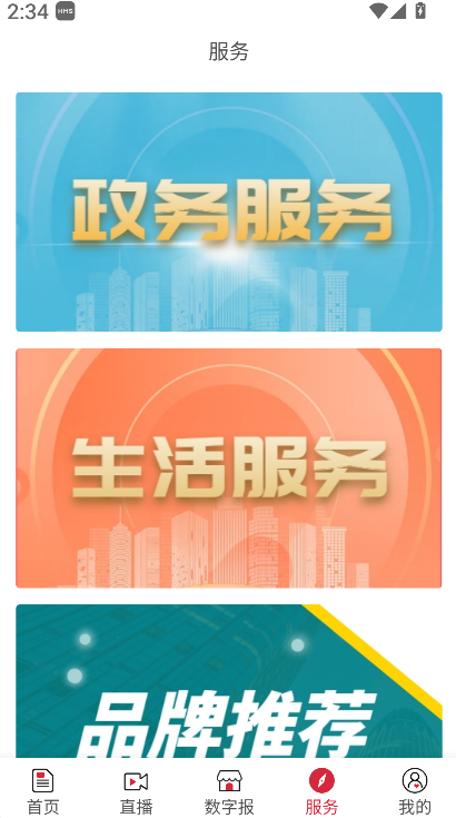 4、服务板块包含政务服务、生活服务及品牌推荐,覆盖办事、生活便利和信息获取等多方面功能。