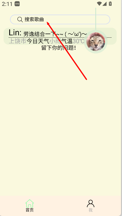 1、进入《yulinlin音乐》首页后,可以在顶部搜索栏中输入想要收听的音乐名称,方便快速定位目标歌曲。