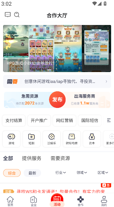 3、支持线上活动信息发布,促进多方交流合作,推动资源互通与业务拓展。