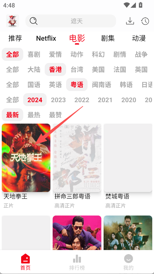 1、分类维度丰富,包含推荐、Netflix、电影、剧集、动漫等分类,电影类还可进一步按类型、地区、语言、年份等细化筛选。
