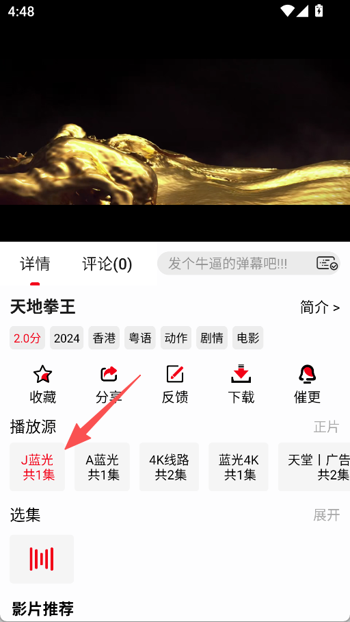 3、播放源选择多样,“J蓝光”“A蓝光”“4K线路”等不同播放源,可适配不同的画质需求。