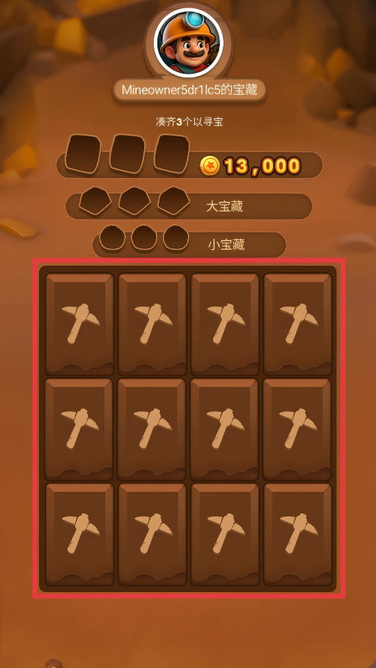 2、点击红框内宝藏进行寻宝,当凑齐寻宝道具后,触发寻宝机制,开启寻宝之旅获取宝藏奖励。