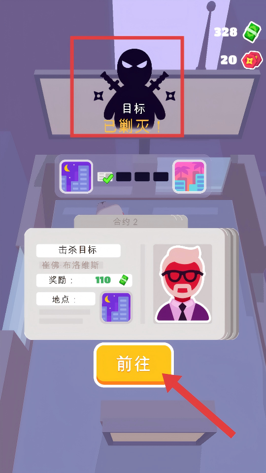 4、成功击败目标敌人,看到【目标-已剿灭!】提示后,点击【前往】按钮,领取奖励并接取新任务。