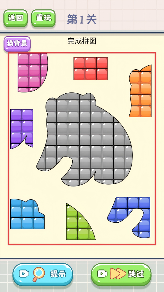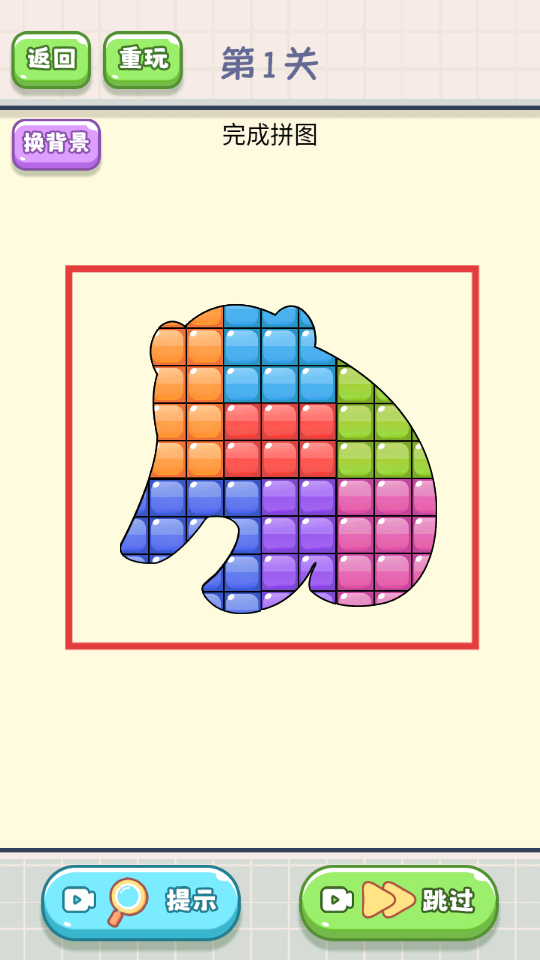 3、成功将所有碎片拼合,组成完整图案,如红框内的图案,即可完成当前关卡。