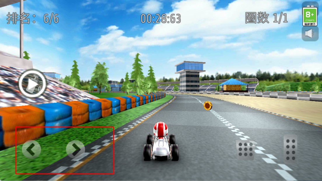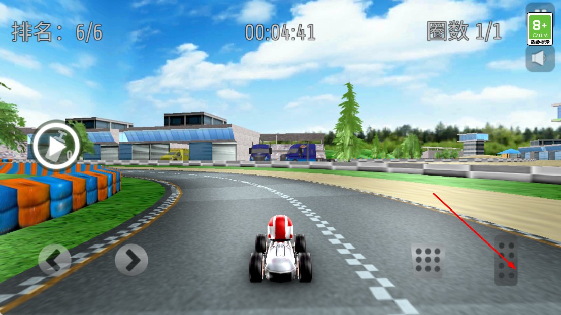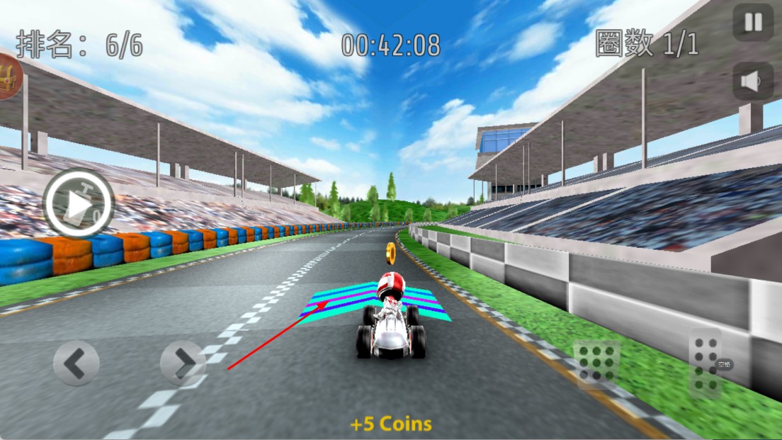 2、比赛时,按右侧【油门】键,提升赛车速度,全力冲刺。