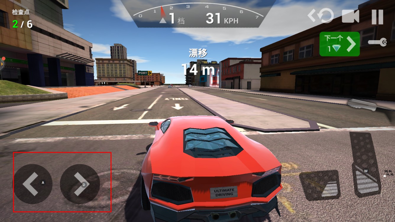 4、遇弯道等需转向处,用左右方向键,灵活控制跑车方向,精准通过检查点。