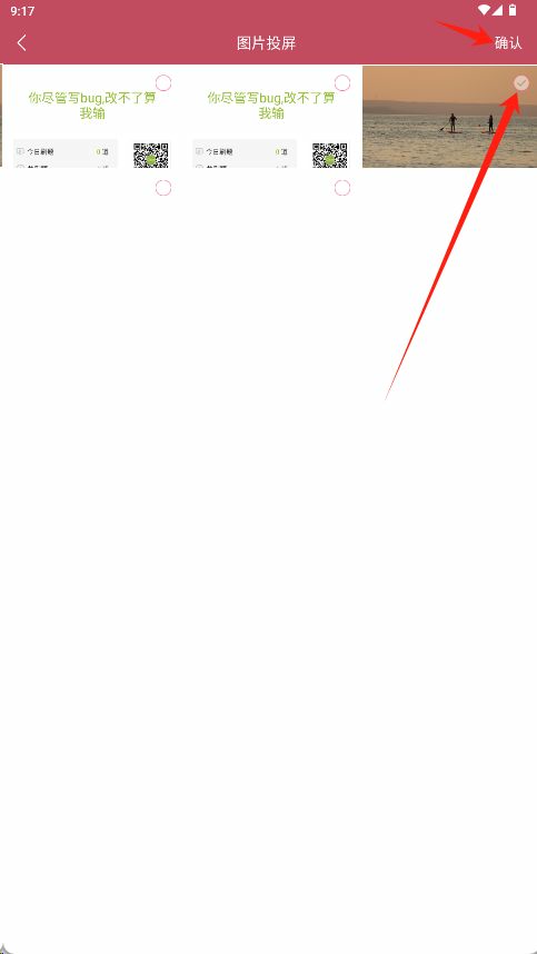 3、在图片投屏页面,编辑好图片点击右上角的“确认”按钮即可完成投屏。