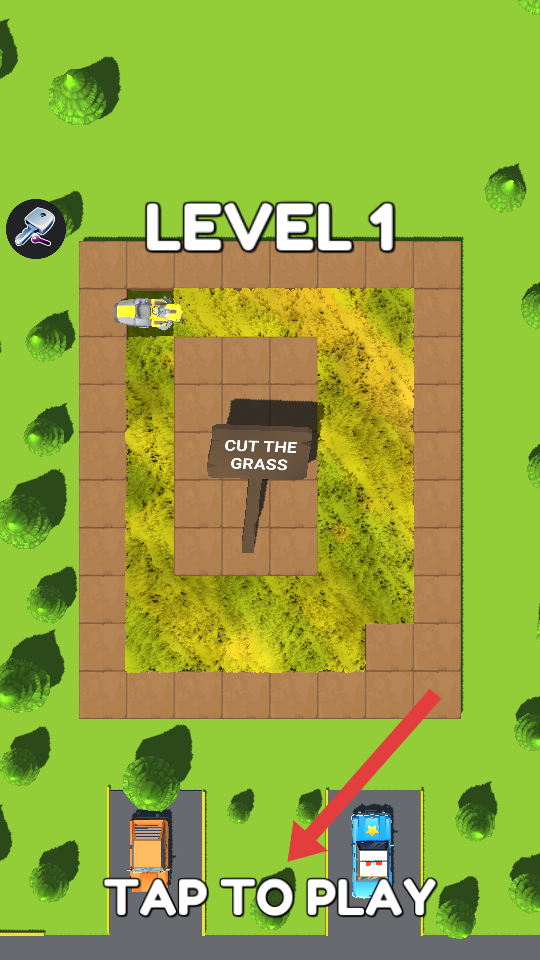 1、在【LEVEL-1】关卡界面,点击【TAP-TO-PLAY】开始游戏,进入修剪草坪环节。