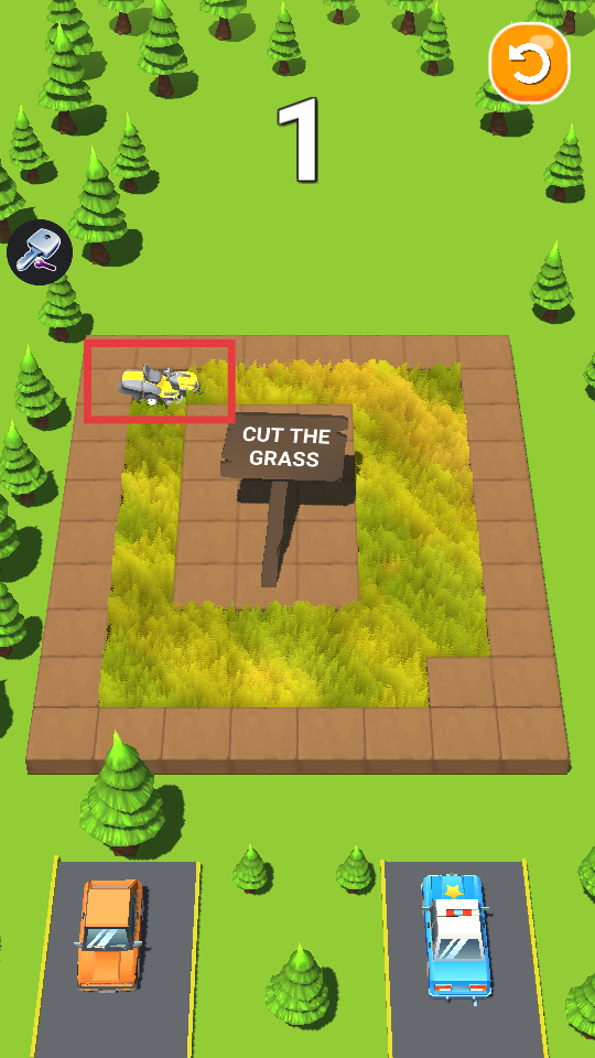 3、将草坪区域内的草全部割完,留意【CUT-THE-GRASS】标识周边的草坪,确保无遗漏。