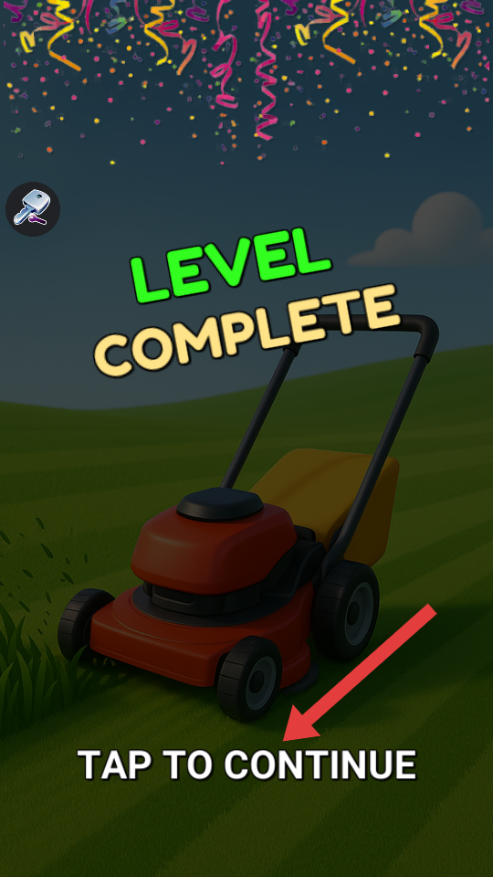 4、完成割草任务后,看到【LEVEL-COMPLETE】提示,点击【TAP-TO-CONTINUE】进入下一关。
