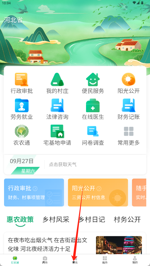 1、在软件首页底部导航栏中,找到并点击“惠农”选项。