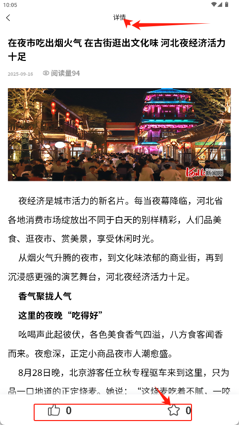 3、打开文章详情页后,点击页面右下角的星形“收藏”图标即可。
