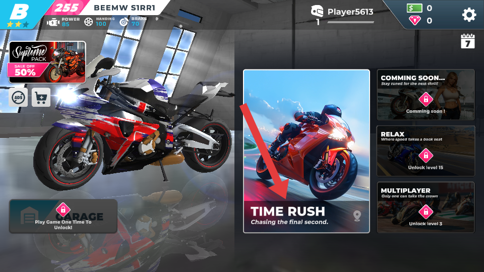 1、在游戏主界面,点击【TIME-RUSH】模式进入游戏。