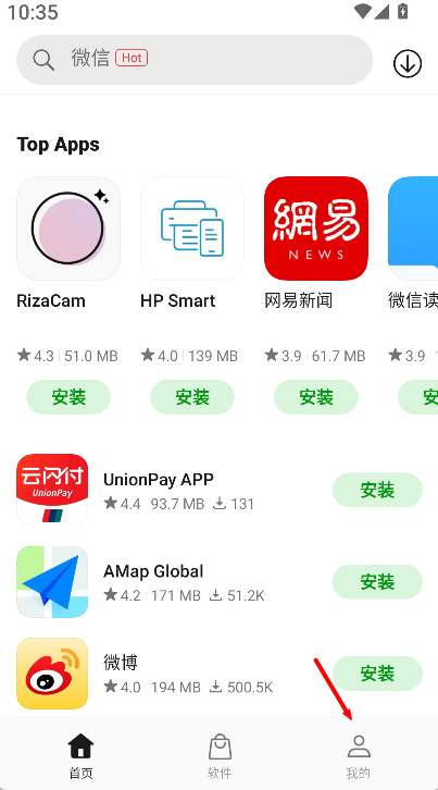 1、进入《软件商店》首页后,在界面右下角找到“我的”选项,点击进入个人中心页面。
