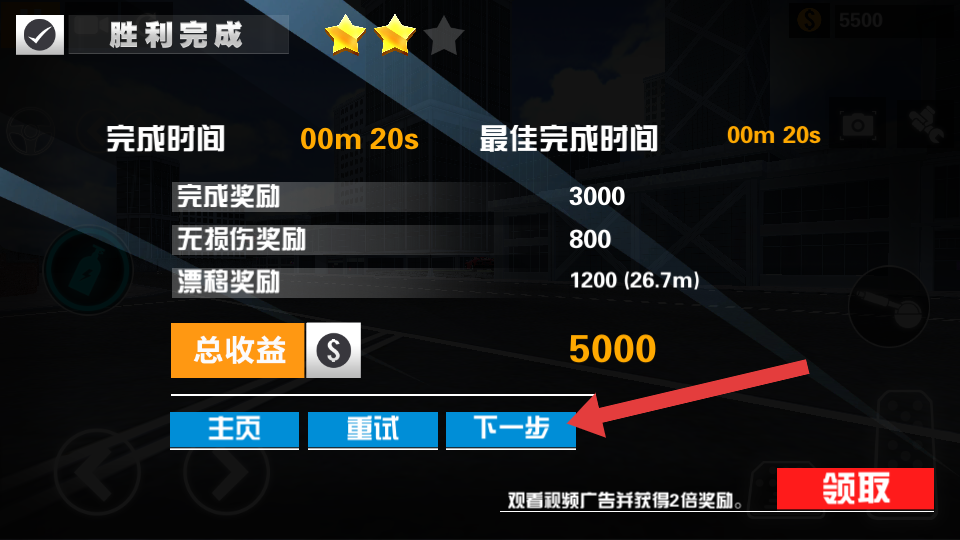 4、成功通关后,会显示【胜利完成】等结算信息,点击【下一步】进入下一关挑战。