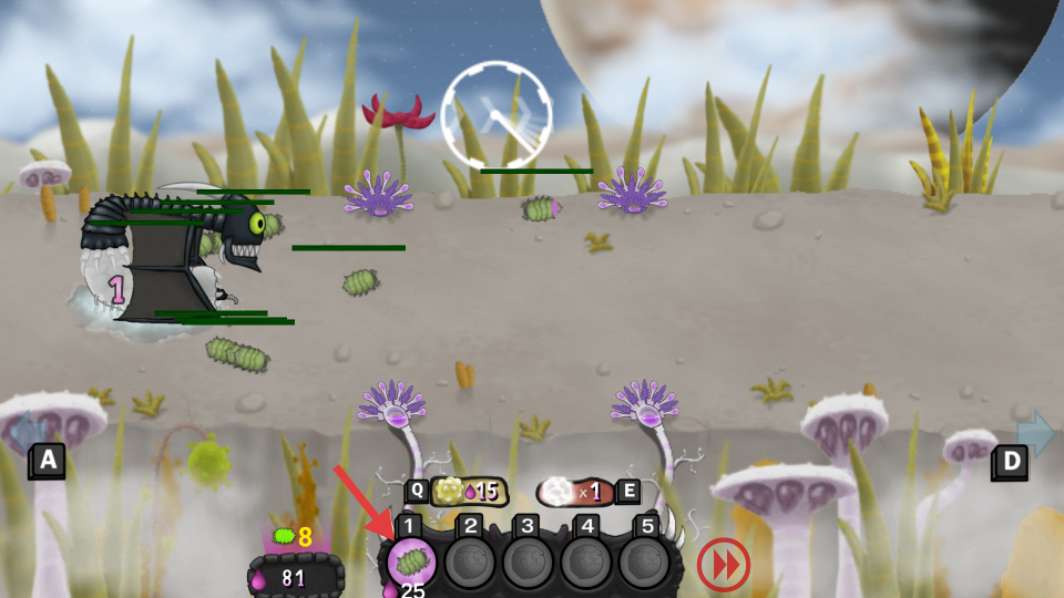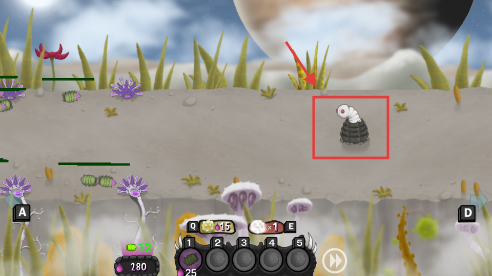 3、点击下方带有绿色虫卵图标的按键,释放虫卵类单位参与战斗。