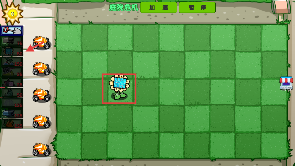 3、优先种植【向日葵】,它产阳光,为后续种攻击植物提供资源,合理布局草坪格。