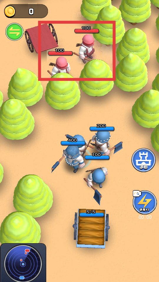 2、遇到红框内的【敌方战士】时,指挥我方战士靠近并与之战斗,消灭敌人。