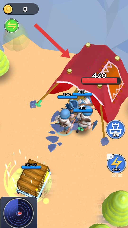 3、将敌人消灭完后,集中火力攻击箭头所指【敌方大本营】,将其破坏消灭即可通关。