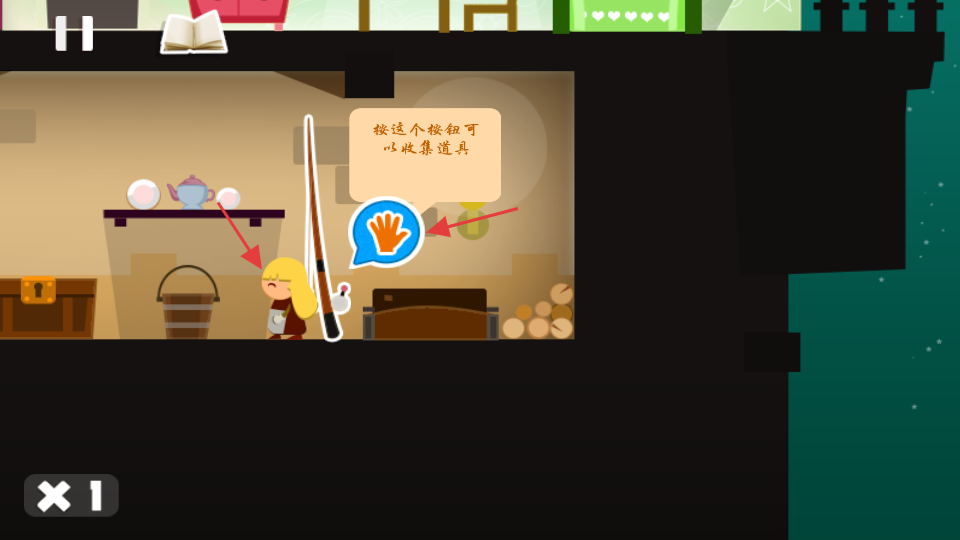 3、按提示点击手掌按钮,收集场景中的道具,推进任务。