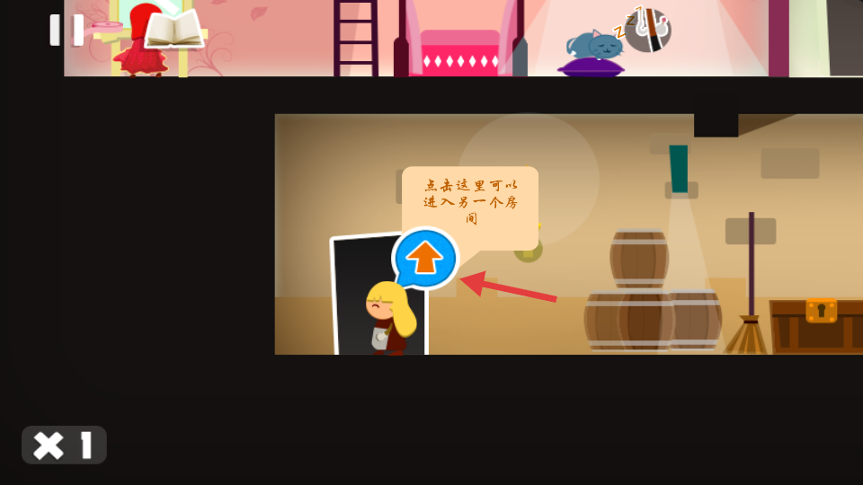 4、点击带向上箭头的区域,进入另一个房间,探索更多场景。