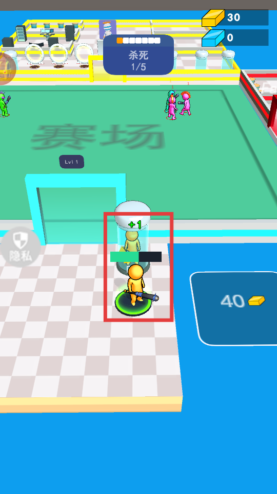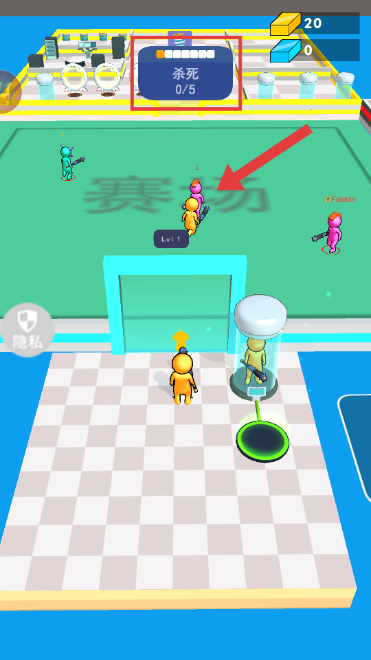 2、制造完复制台后,明确需红框内【杀死0/5】的任务提示,复制台将会召唤黄色小人向赛场内的敌人发起攻击。
