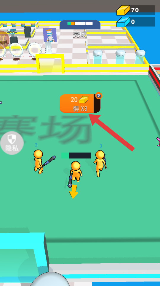 4、成功击败指定数量敌人后,点击红箭头所指的【20得X3】,获取奖励后,继续探索赛场,争取更高分数和奖励。