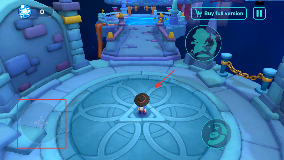 1、用左侧虚拟方向键操控角色,在平台上移动,开启冒险。