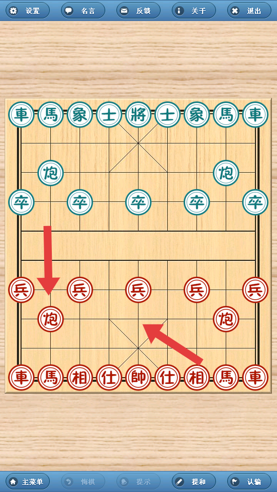 1、进入游戏界面,按象棋规则,可先将【红方兵】按【红箭头指示方向】向前移动一格,开启对局。