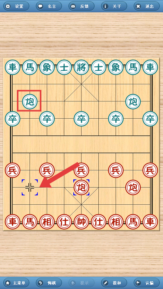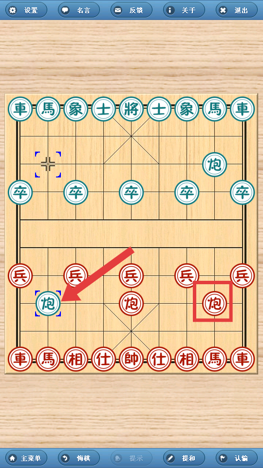 3、当对方到达位置后,操控【红方炮】,依照象棋“隔山打牛”规则,红框内吃掉【蓝方炮】。