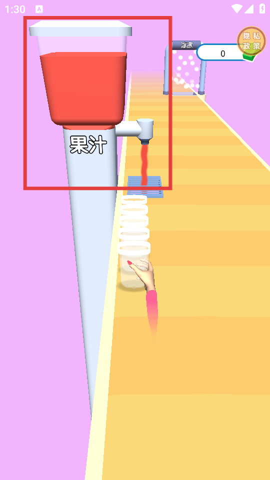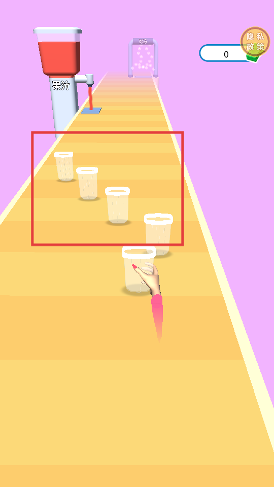 2、当经过红框内的【果汁装置】时,让杯子接上果汁,增加杯子的价值。