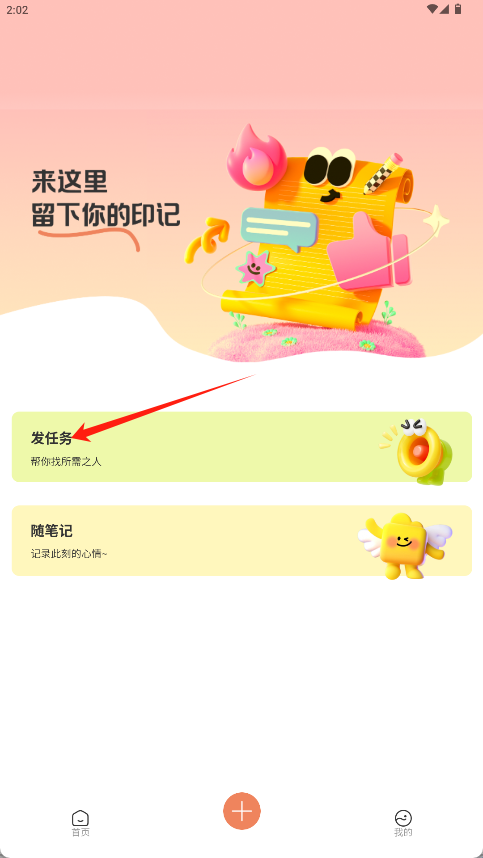 2、在应用首页可通过底部导航栏的“加号”按钮,快速创建新的任务或笔记内容。