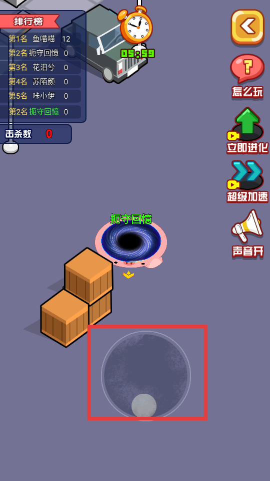 3、遇到方框内大于自身的【敌人】时,尽可能避开,同时寻找机会吞噬对手,提升【击杀数】。