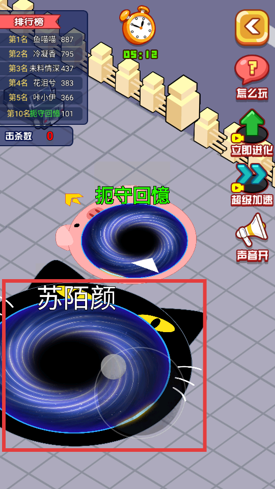 3、竞技对抗模式:可以和其他玩家的黑洞同场竞技,看谁吞噬得更快更多,争夺排行榜名次。