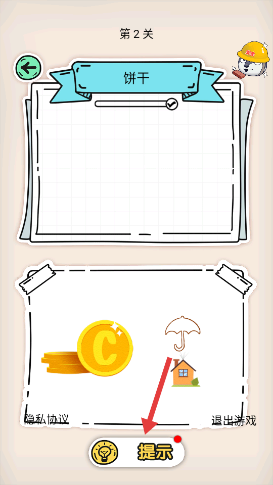 4、在闯关过程中,若有困难可点击【提示】按钮获取帮助,推进关卡进程。