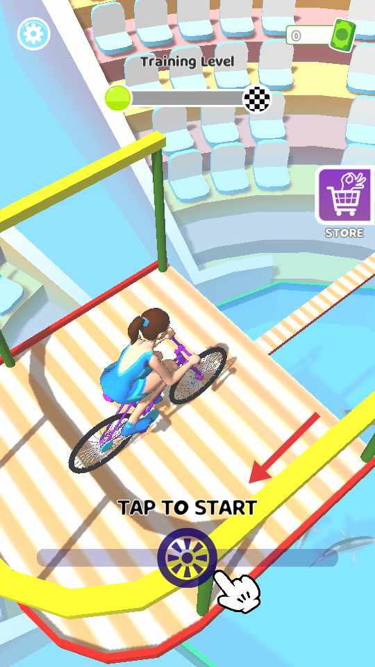 1、点击【TAPTOSTART】,操控角色骑自行车开启挑战。