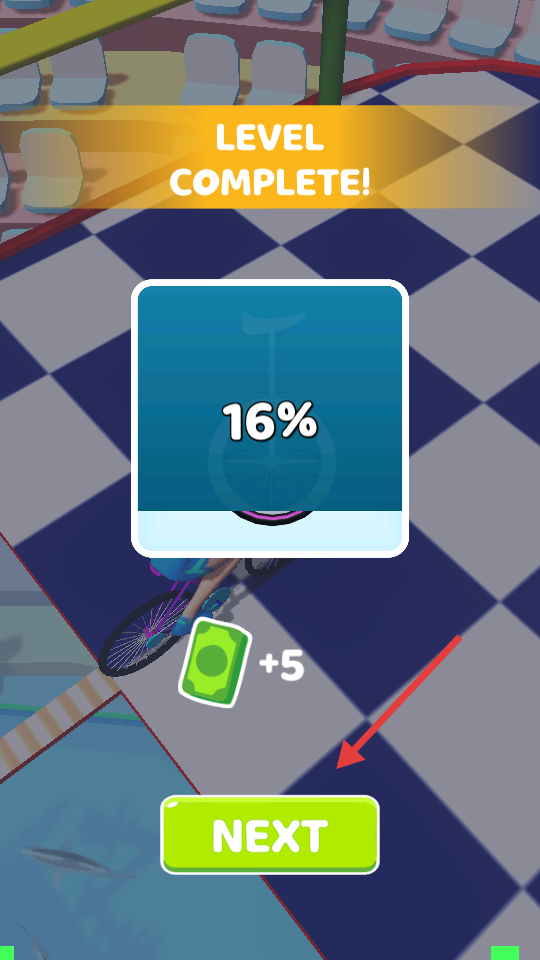 4、通关后界面显示【LEVELCOMPLETE!】,点击【NEXT】按钮进入下一关。