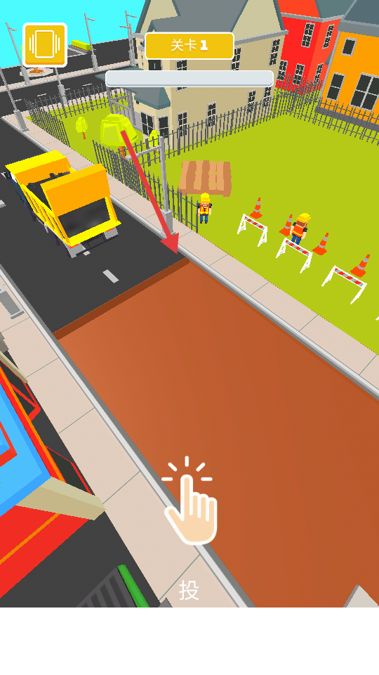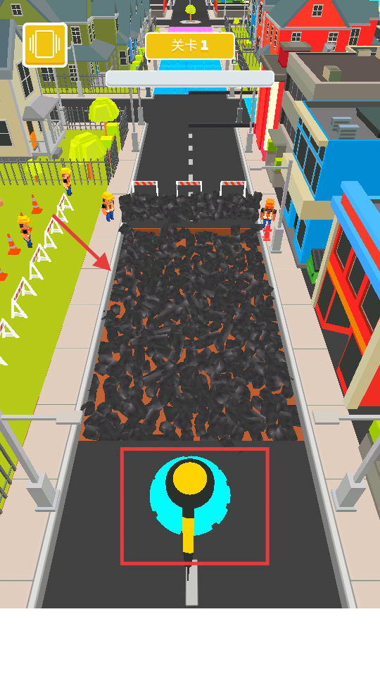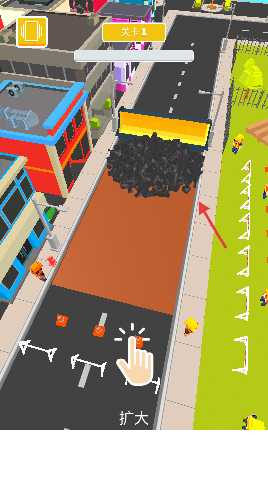1、进入“关卡1”,点击施工区域,倾倒黑色物料。