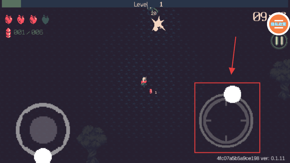 2、利用左下角摇杆操控角色移动,在Level-1场景中探索,躲避或攻击魔物,推进游戏进程。