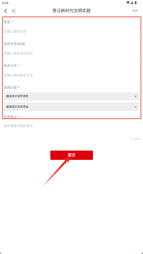 3、填写并提交活动反馈表单,需输入姓名、联系方式等信息后点击“提交”按钮。